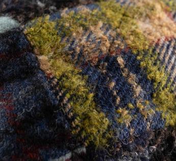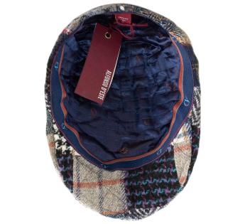 Spiel von Mustern und Texturen auf einem Hintergrund aus warmer Wolle. Eine Kappe im Patchwork-Stil mit verschiedenen Wollarten (lockig und Tweed). Eine Kappe, die uns diesen Winter und sogar schon in der Übergangszeit verwöhnen wird, indem sie uns unter ihrer Kopfhöhe gemütlich und weich empfängt. Für sehr angenehme lässig-schicke Erlebnisse.