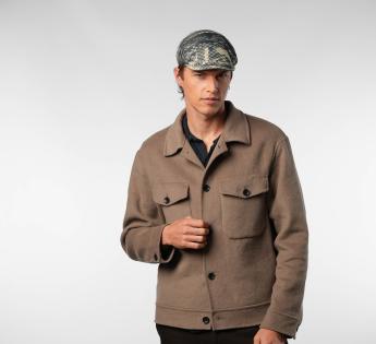 Zwischen Schatten und Licht fasziniert diese Flat cap mit ihrem originellen Jacquard-Muster, das geometrische Formen und Camouflage-Inspiration vereint. Ein kunstvoll gearbeitetes Gewebe, das dem Material Charakter verleiht und dabei eine schöne Geschmeidigkeit bewahrt. Die kontrastierenden Farbtöne verleihen eine grafische und zeitgemäße Note.