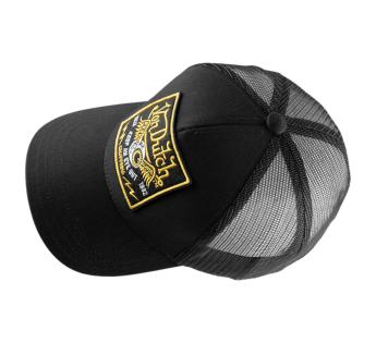 Das gestickte Emblem, der schwarz-goldene Kontrast und die Trucker-Linie wecken eine rauere, markantere amerikanische Vorstellung—fast schon rockig im Auftritt.