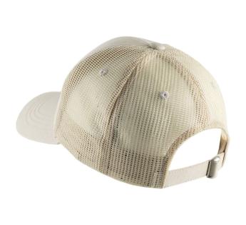Das strukturierte Vorderteil sorgt für eine markante Präsenz, während die sehr luftige Maschen am Hinterkopf das Tragegefühl erleichtern und die Luft frei zirkulieren lassen. Die Metallschließe setzt ein präzises, sauberes Finish, das den Unterschied macht.